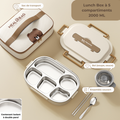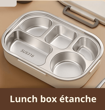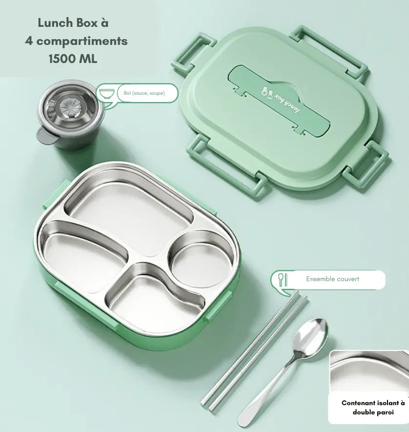 - Compartiments pratiques : La LunchInox est dotée de 4 ou 5 compartiments (selon le modèle), vous permettant de séparer les différents plats, des entrées aux desserts, sans mélange des saveurs. Elle inclut également un bol spécial pour les sauces ou les soupes, offrant ainsi une solution complète pour chaque repas.